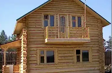 Проект "Зелинда " - прекрасный двухэтажный дом для постоянного проживания из рубленного бревна с балконом.Площадь Абая, 58 97.2 кв.м. с размерами 9 на 6.