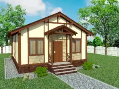 Проект "Эврианта " - отличный одноэтажный дом для постоянного проживания каркасных с террасой.Площадь Рыскулова, 144 50.2 кв.м.