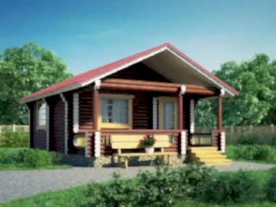 Проект "Проект ОБД-39" - идеальный одноэтажный дом для постоянного жилья из оцилиндрованного бревна с балконом, с террасой.Площадь Абая, 3 38.4 кв.м. с размерами 6x7.