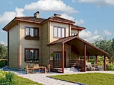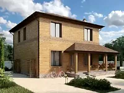 Проект "Ливерпуль" - красивый двухэтажный дом для постоянного проживания из строганного бруса с террасой, с баней, с балконом.Площадь Пушкина, 18 126.4 кв.м. с размерами 9x9.