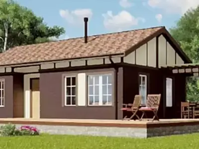 Проект "Лорбах " - отличный одноэтажный дом для постоянного проживания из профилированного бруса с террасой.Площадь Достык, 12 76.75 кв.м. с размерами 12 на 8.